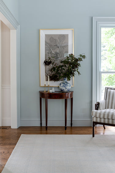 Suited for floors in traditional and modern spaces, this decorative area rug assortment is an interior design staple for well-dressed décor. Tailored textile patterns take on new forms with toned down tartan plaid and windowpane check in sophisticated shades of blue, gray and ivory. Hand woven from 100% natural wool fibers, the uses classical prints and an elegant color palette to create an enduring floorcovering with timeless appeal.
