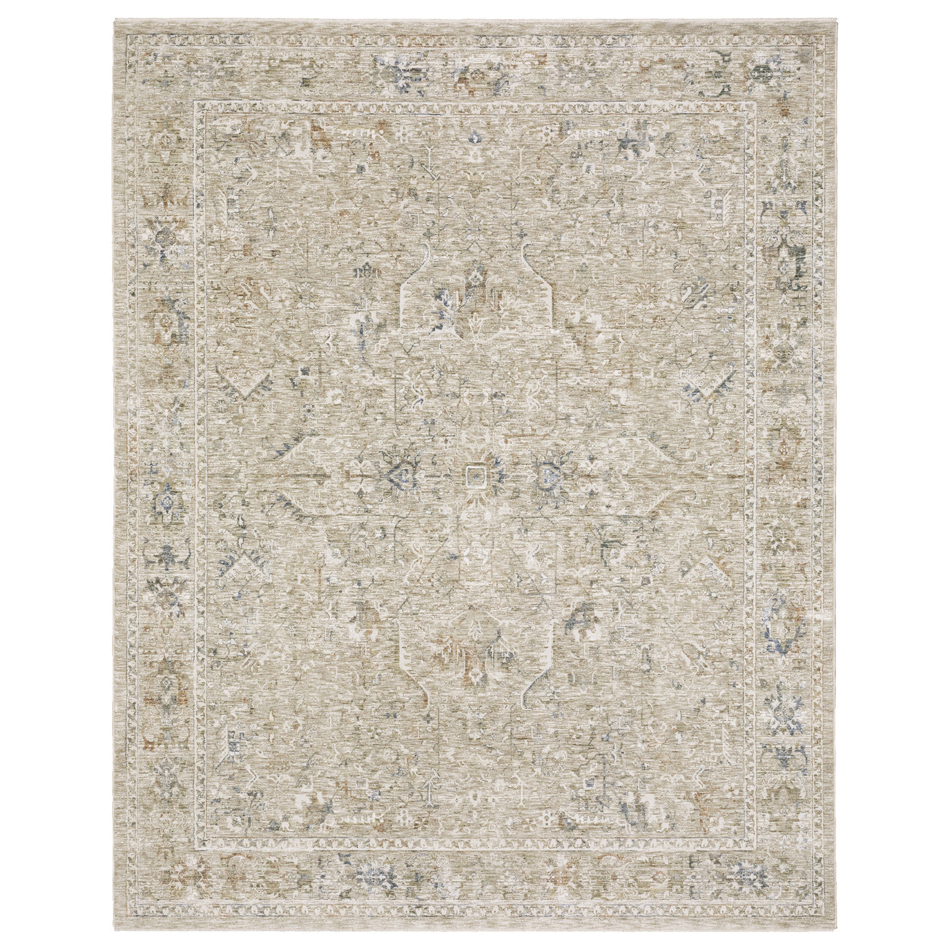 The Avalon AVA02 Beige Blue indoor area rug blends classic oriental medallion design with a relaxed, distressed finish. Warm beige tones pair with soft blue accents to create a balanced look that suits traditional, coastal, and global inspired spaces.